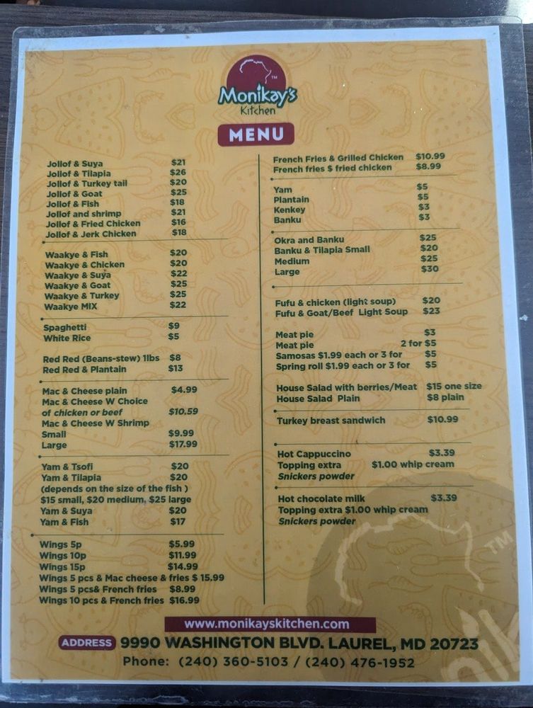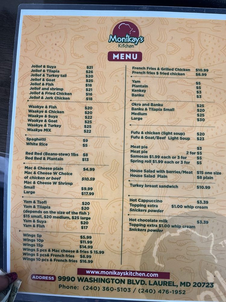 Welcome to Monikay's Kitchen, where vibrant flavors of West Africa come alive! Located at 9990 Washington Blvd N, Laurel, MD, this black-owned and women-led establishment offers an inviting experience with a cornucopia of tantalizing dishes. Known for their signature Jollof Rice and succulent Fried Chicken Wings, Monikay's ensures each meal is bursting with authentic taste. Customers rave about the Chicken Mac & Cheese and Philly Cheese Steak Sandwich, crafted to perfection and served with southern charm.