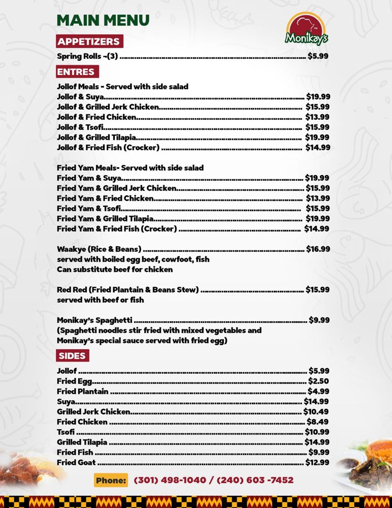 Aside from a delectable menu, Monikay's Kitchen caters to diverse dietary preferences with vegan choices and makes dining seamless with takeout, reservations, and waiter service. The warm atmosphere complements its phone number, (240) 360-5103, and on-site parking. As you indulge in their happy hour specials, you can bask in the compliments from satisfied patrons. Discover why Monikay's is a must-visit culinary gem!